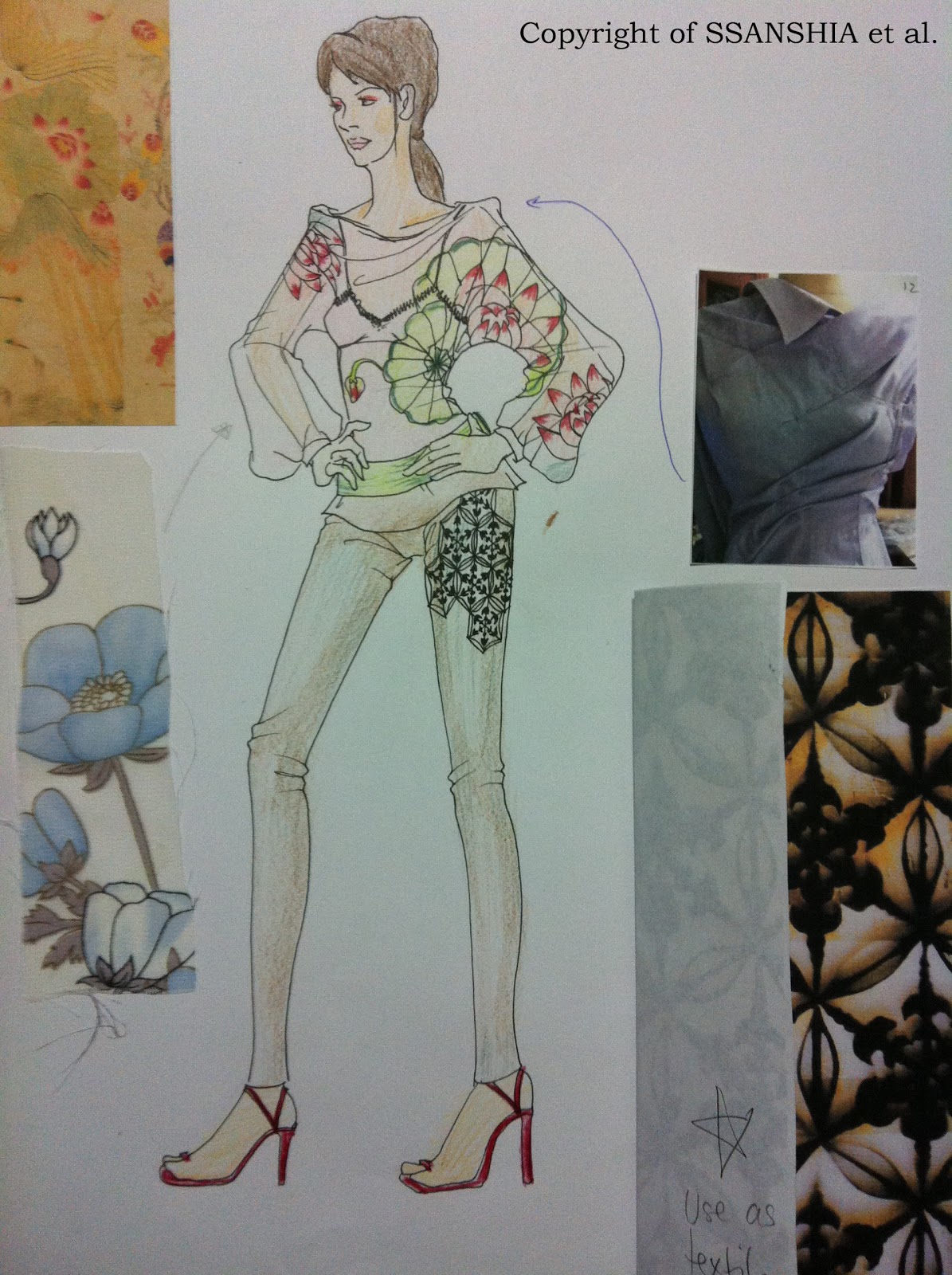 This post is an explorative 7 pages of illustrations that utilises sections of drapes and Korean-inspired textile prints with fabric swatches.